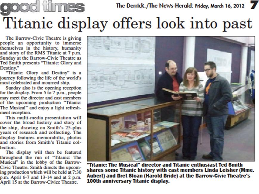 OPENING NIGHT of TITANIC April 6